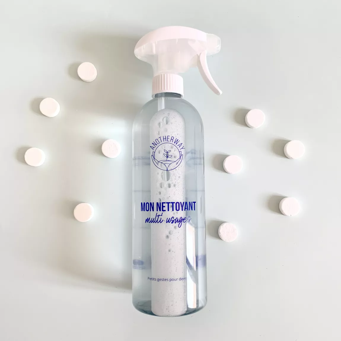 Elle permet d’accueillir vos préparations maisons ou les pastilles nettoyantes multi-usages et pour les vitres ANOTHERWAY.