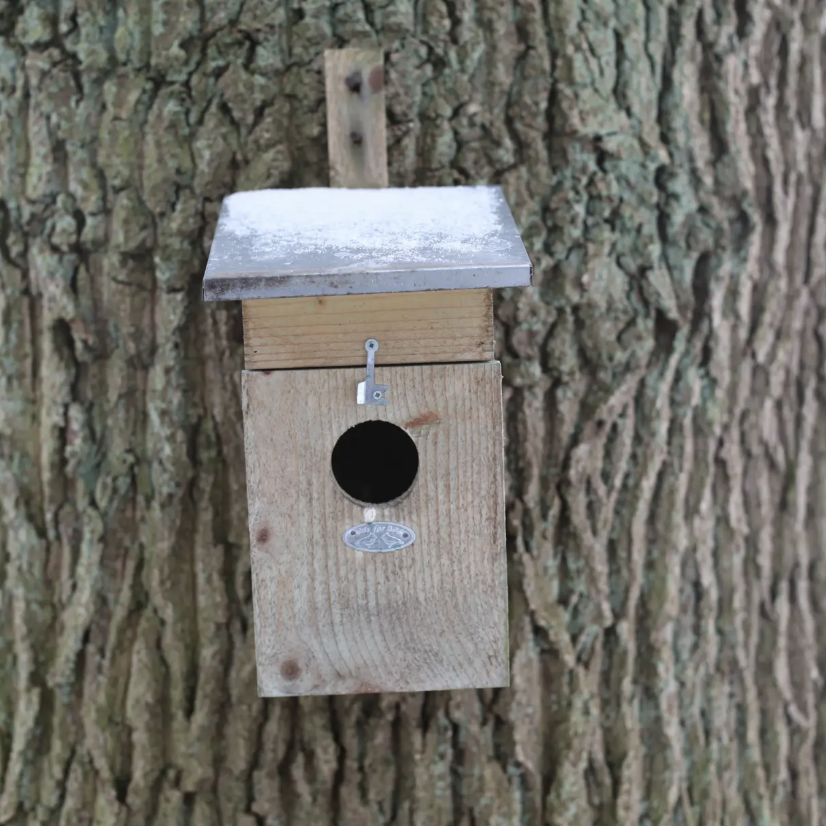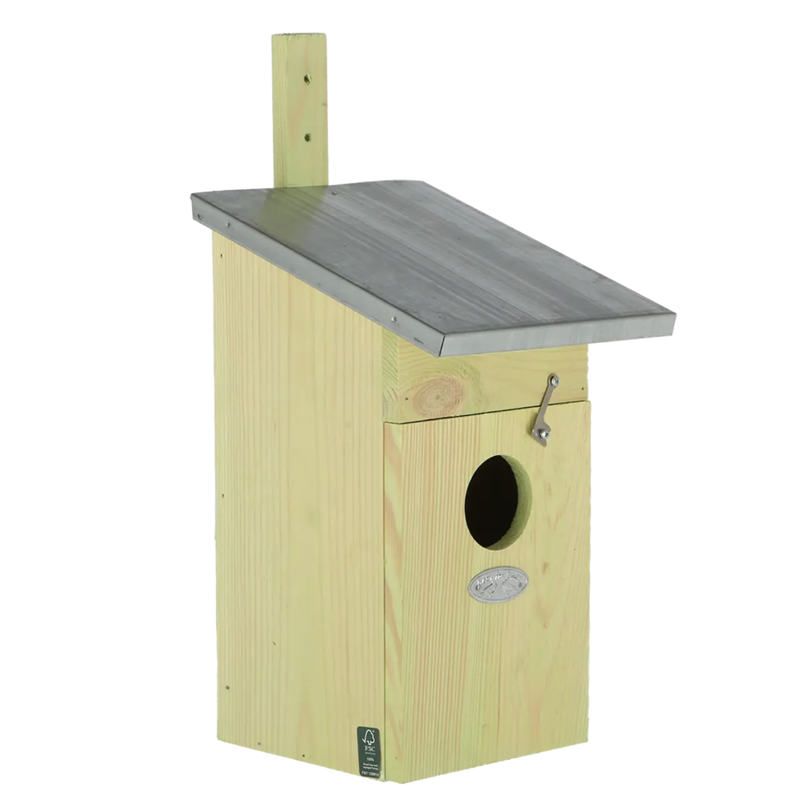 Fabriqué en bois avec un toit en zinc, ce nichoir est à la fois robuste et résistant aux intempéries. Son trou d’entrée de 50 mm est spécialement adapté à l’étourneau, garantissant un accès sécurisé tout en limitant les intrusions d’autres espèces.