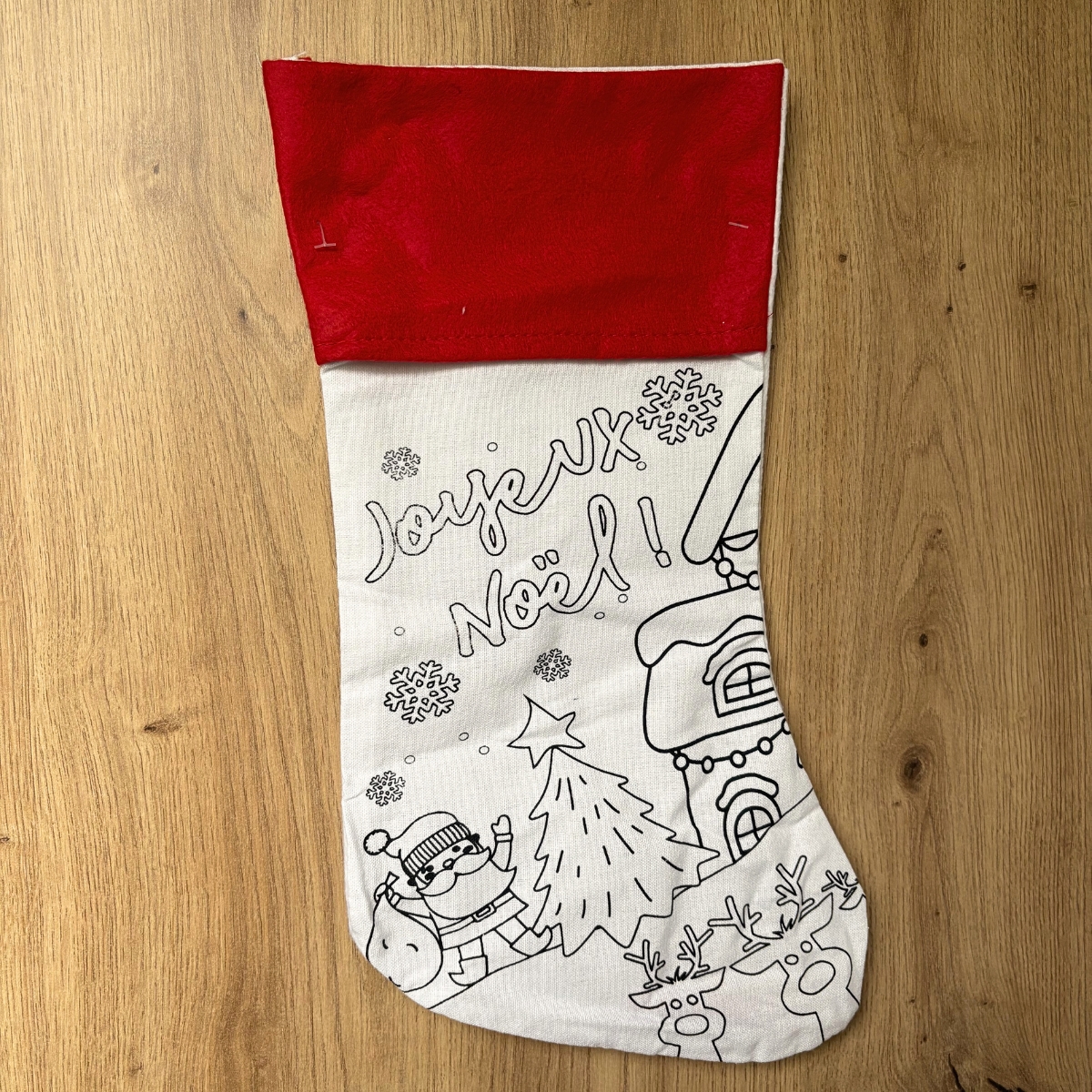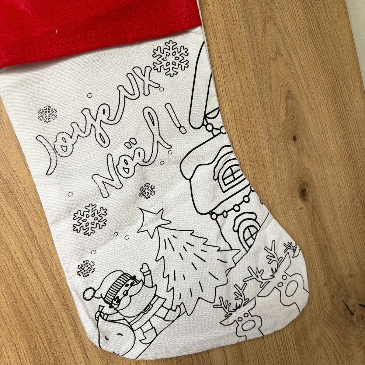 Une chaussette de Noël en format 26 × 43 cm, matière à colorier.