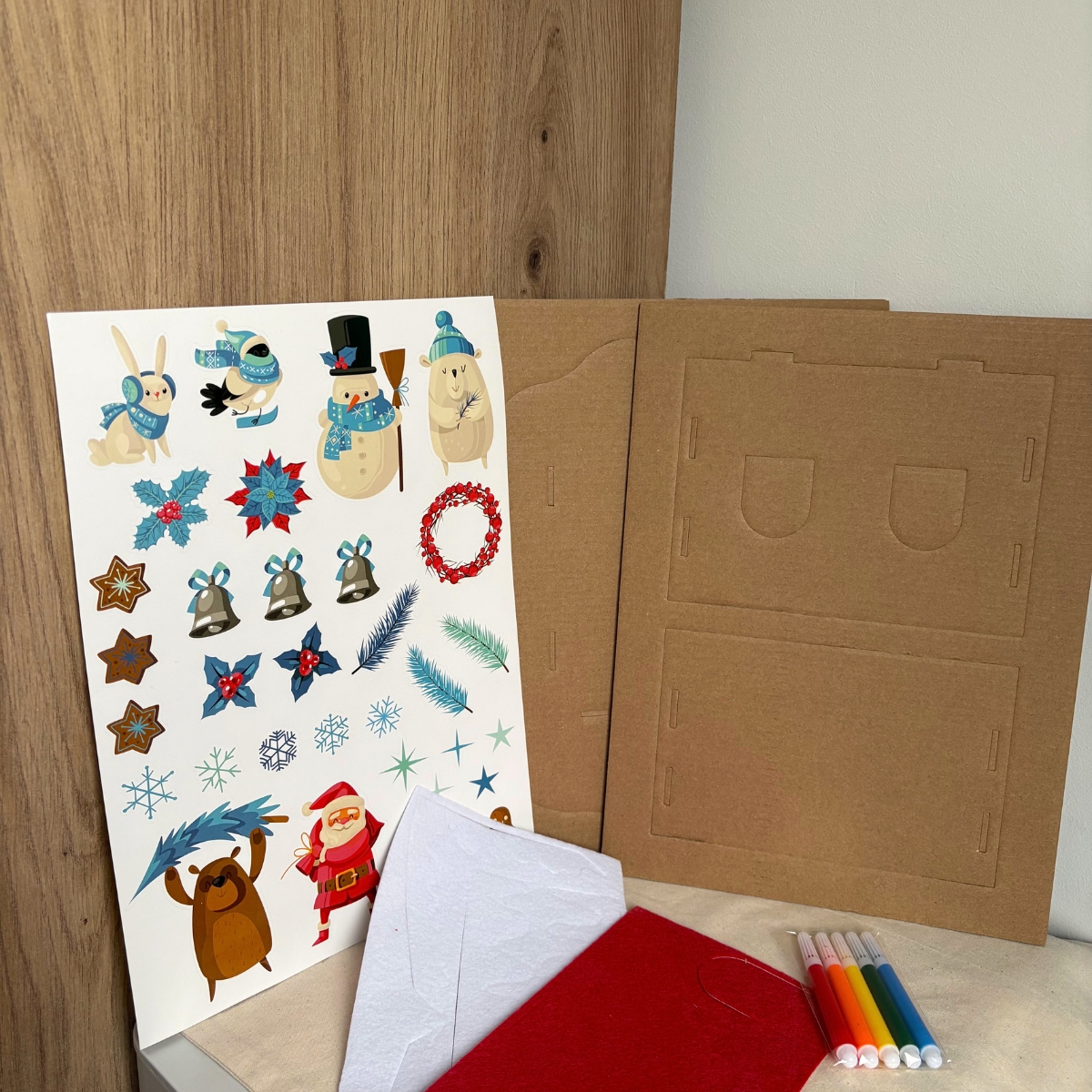 Offrez à vos enfants un moment ludique et créatif avec cette « Maison de Noël à construire et à décorer », un kit clé en main pour fabriquer une jolie maison en carton (19 × 19 × 21 cm), la recouvrir de feutrine et l’agrémenter de stickers de Noël — parfaite pour décorer la maison en période de fêtes tout en développant l’imaginaire.