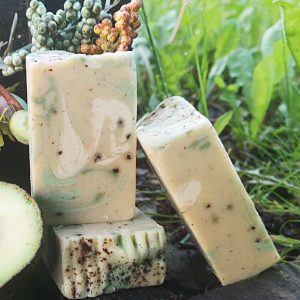 Savon doux et hydratant, huiles d’olive et noix de coco vierges, tournesol et ricin première pression à froid, beurres de karité et de cacao bio non raffinés, surgras huile d’abricot.