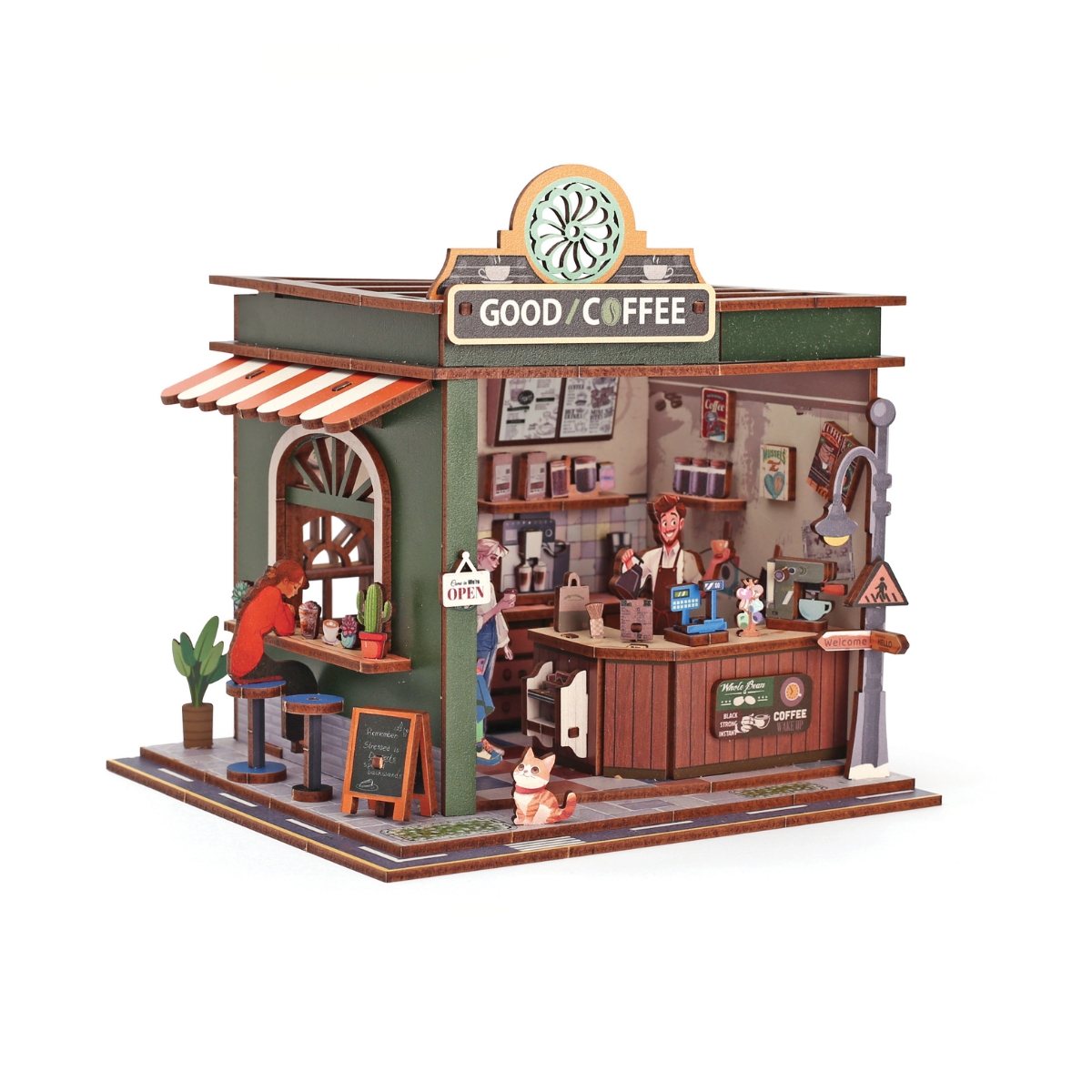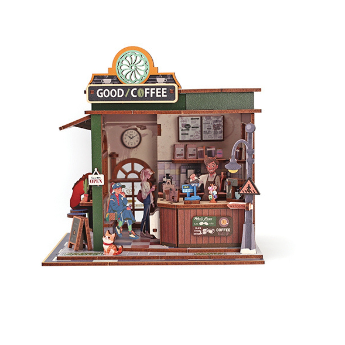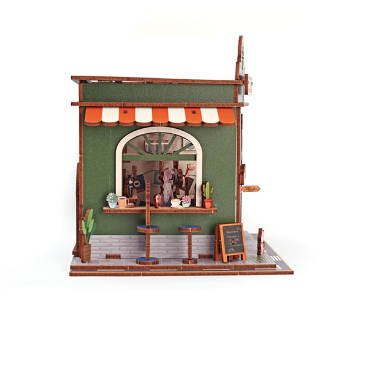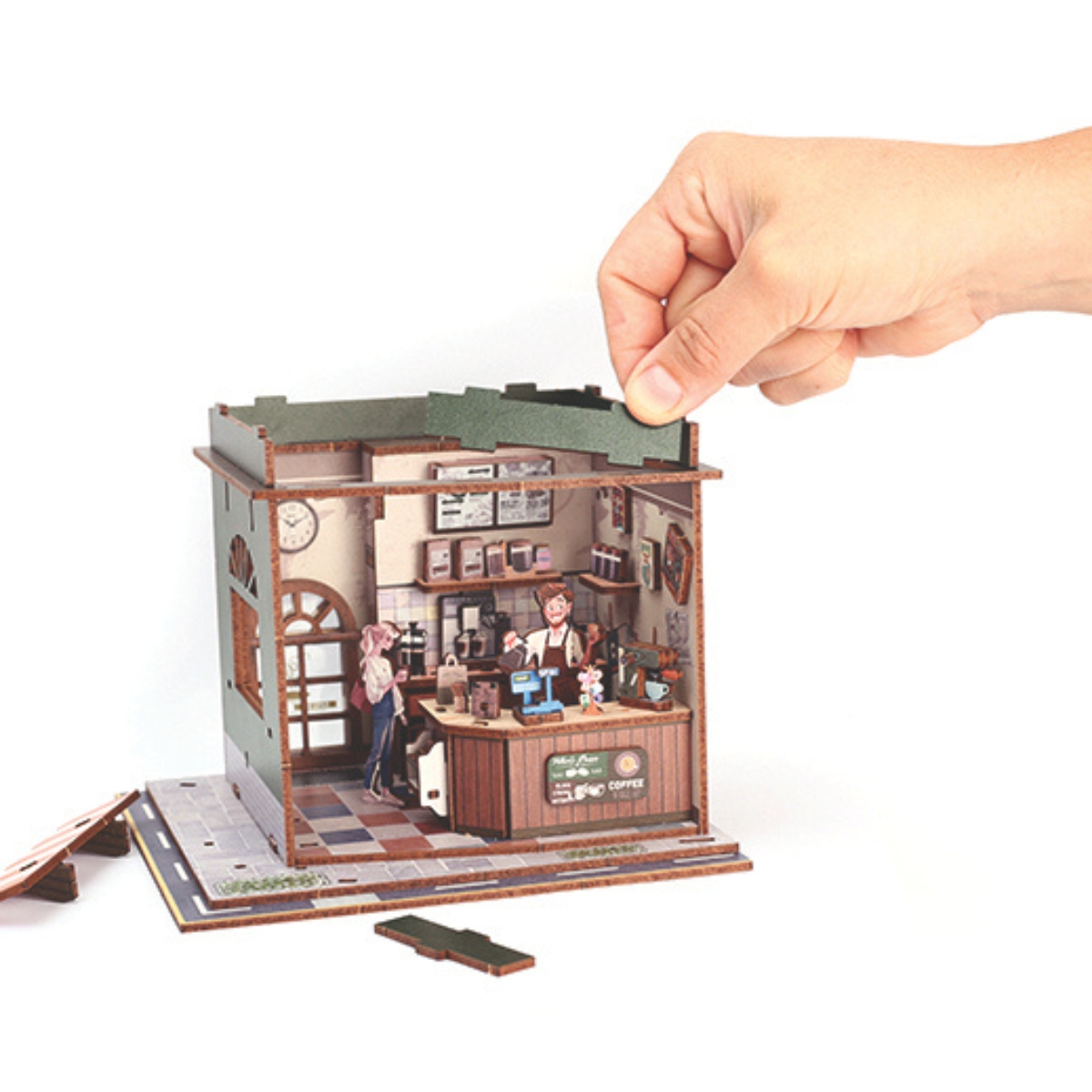 Une fois assemblé, ce coffee shop miniature devient un objet déco charmant pour votre salon, bureau ou bibliothèque — un véritable point focal visuel dans votre intérieur.
